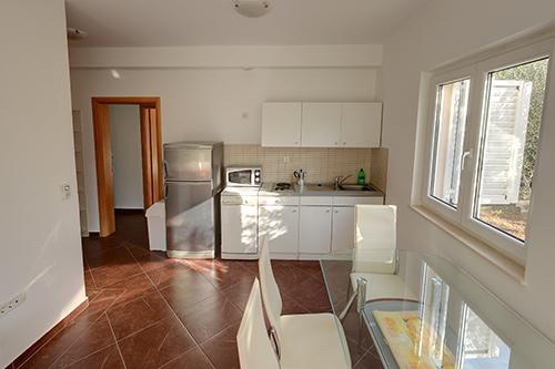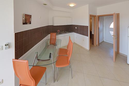 Apartman č.8 na prízemi : spálňa s kuchyňou s rozťahovacím gaučom, jedáleň, kúpelňa s WC.