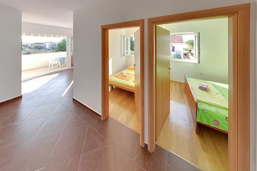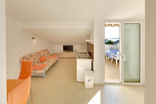 Apartman č.6 na 1.posch.: 2 samostatné spálne + kuchyňa s jedálenským kútom a rozťahovacím gaučom, kúpeľňa s WC, balkóny s priamym výhľadom na more.
