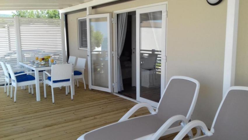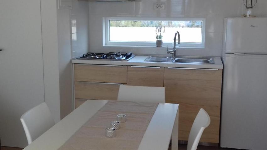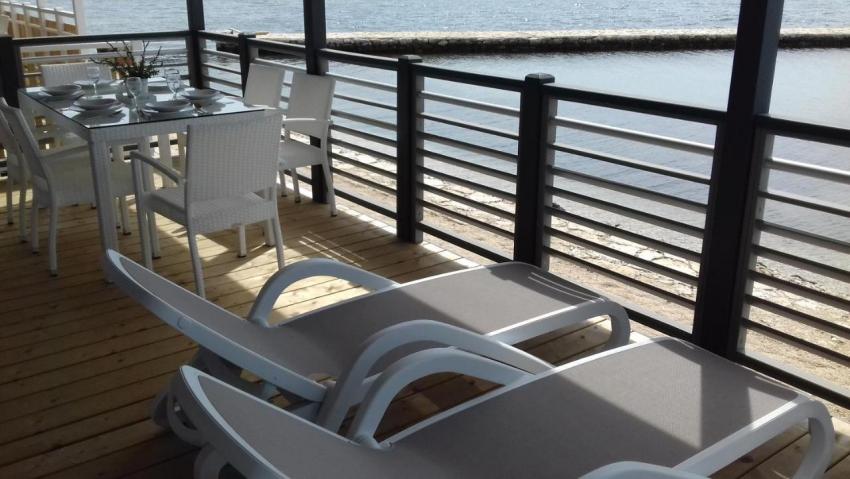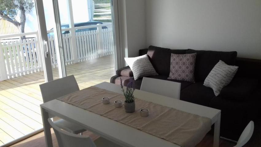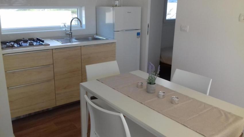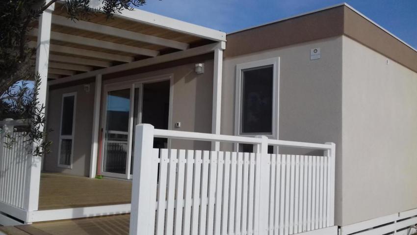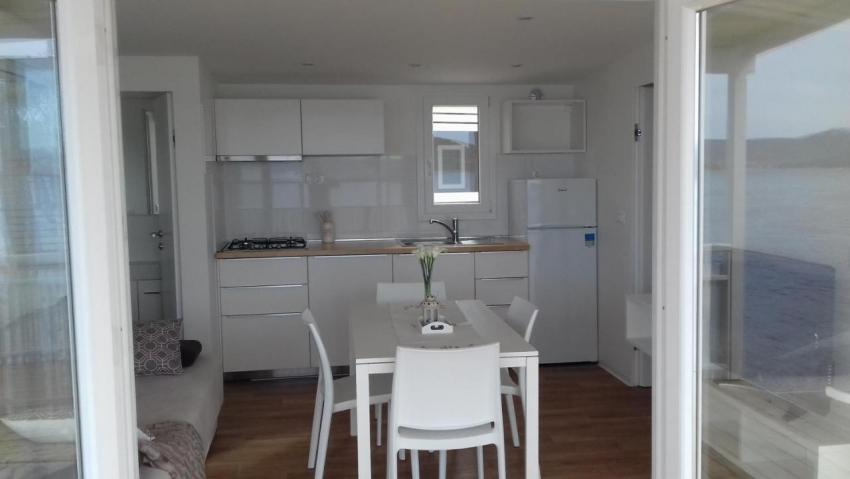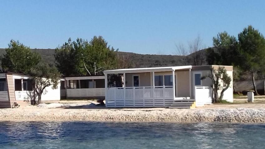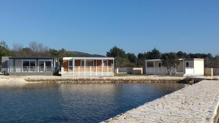 Popis: 7 mobilných domov, vlastný uzavretý pozemok s vlastnou plážou a mólom