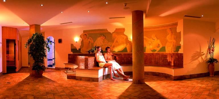 Sauna, Fitnescentrum, Solárium, Masáže,Vírivka, Turecký / parný kúpeľ, Krytý bazén (celoročne otvorený) s panoramatickými oknami a jacuzzi.