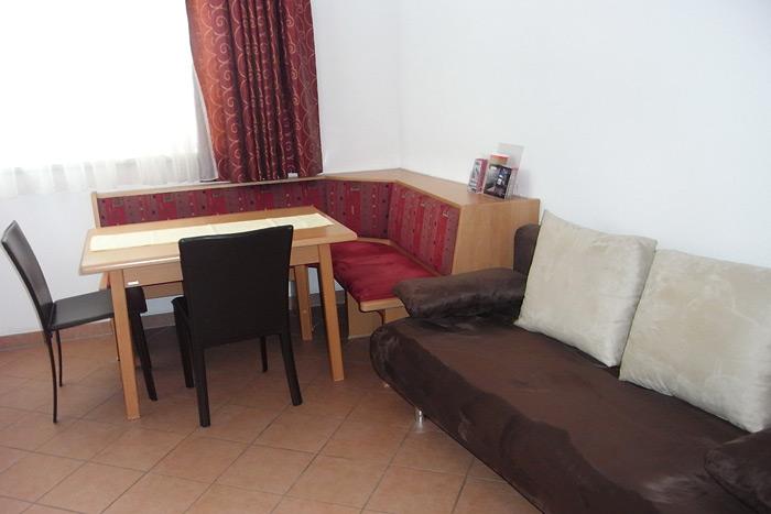 Ubytovanie : Apartmán je vybavený: 2 oddelené spálne, každá so sprchovacím kútom a WC.Obývacia izba, kuchyňa so satelitnou TV. K vybaveniu kuchyne patrí mikrovlnná rúra, umývačka, chladnička, elektrický sporák, rúra, kávovar a rýchlovarná kanvica.