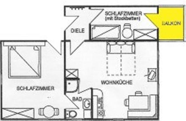 Ampferstein rekreačný apartmán (52 m²) pre 2 až max. 6 osôb, skladajúci sa z dvoch izieb (jedna izba) s poschodovou posteľou, plne vybavená kuchyňa (umývačka, mikrovlnná rúra) s útulným kútikom na sedenie, sklápateľné Joka-lôžko (full double), kúpeľňa, satelitná TV, rádio, balkón. Posteľná bielizeň a uteráky sú k dispozícii.