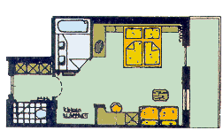 Jednolôžková izba s plochou 18 m². Izba je vybavená malou obývacou izbou, kúpeľnou s vaňou alebo sprchovým kútom, balkónom s panoramatickým výhľadom , rádiom a TV SAT .