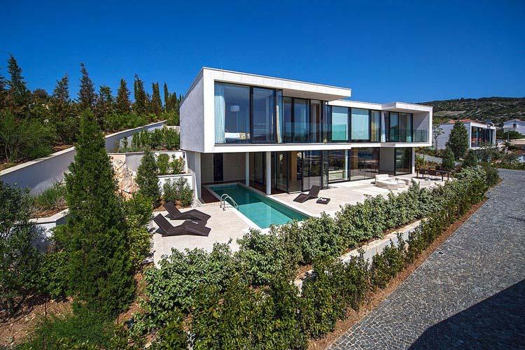 Prízemie: veľká obývacia izba, jedáleň (111 m2), SAT / LCD TV, čiastočne zakrytá terasa (100 m2, krásny výhľad na more, sedacia súprava). Otvorená kuchyňa (sporák so sklokeramickou doskou, rúrou, mikrovlnnou rúrou, mrazničkou, umývačka riadu). Samostatné WC. Vonkajší bazén (čiastočne zastrešený, 20 m2, hĺbka 135 cm), zastrešená terasa (22 m2, lehátka), sauna so sprchovacím kútom. Vnútorné schodisko.