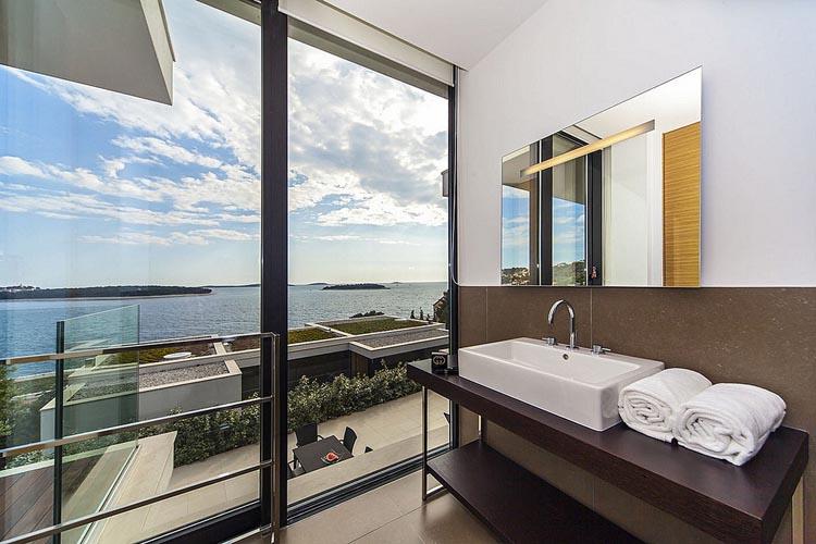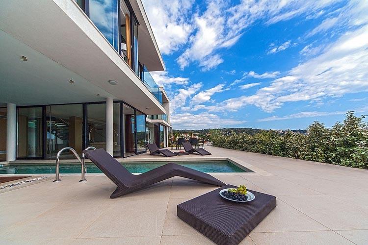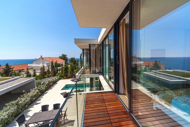 Prízemie: veľká obývacia izba, jedáleň (105 m2), SAT / LCD TV, terasa (82 m2, obývacií set, výhľad na more). Otvorená kuchyňa (sporák so sklokeramickou doskou, rúrou, mikrovlnnou rúrou, mrazničkou, umývačka riadu). Samostatné WC. Vonkajší bazén, čiastočne zastrešený (22 m2, hĺbka 140 cm), sauna so sprchovacím kútom. Vnútorné schodisko.