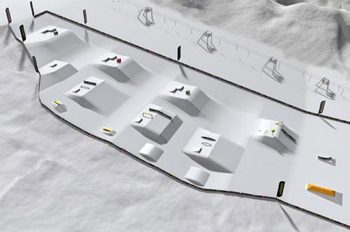 3er Kickerline vždy s 2 výskokmi od 8 do 15m je „zlatý klinec" parku. Skladá se z troch mohutných skokov s odlišnými výskokmi, sprevádzaný kombináciou, pri ktorej jazdec môže medzi štvrtým Kickom zvoliť A-Frame alebo Lollypop. Druhá dráha je s úplne novým Pyraboxom a s rôznymi ďalšími Jib-Obstacles Veľmi rozmanitá a v tretej dráhe sú rôzne prekážky , na ktorých začiatočník môže trénovať svoje prvé skoky.